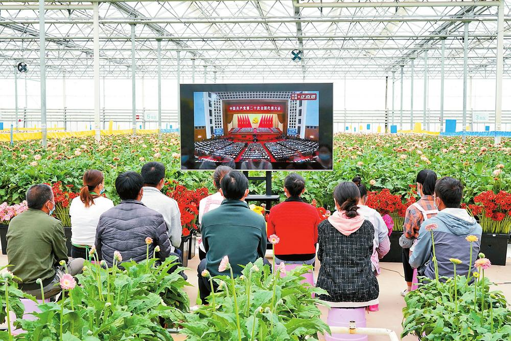 宽敞的道路两旁分布着高端温室花卉基地,地处姚安县的云南胜源农业科技发展有限公司现代化的温室大棚内,听完报告的许映梅对未来的生活充满了信心和期待:“太提气了!报告中的每句话都说到了我们心坎上,如今的日子像鲜花一样越来越美。我在家门口实现就业,收入有保障、看病能报销、养老不用愁、教育更放心。”