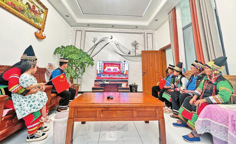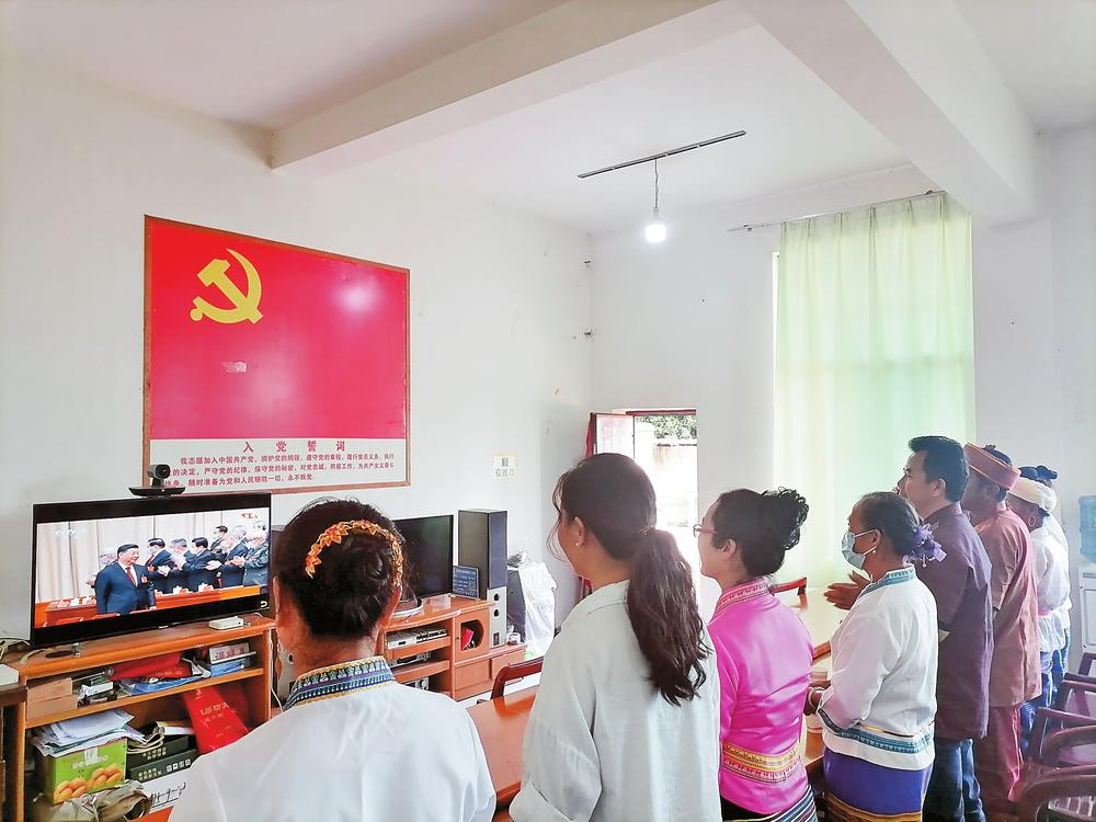 昌宁县卡斯镇卡斯社区布朗族群众收看开幕会直播