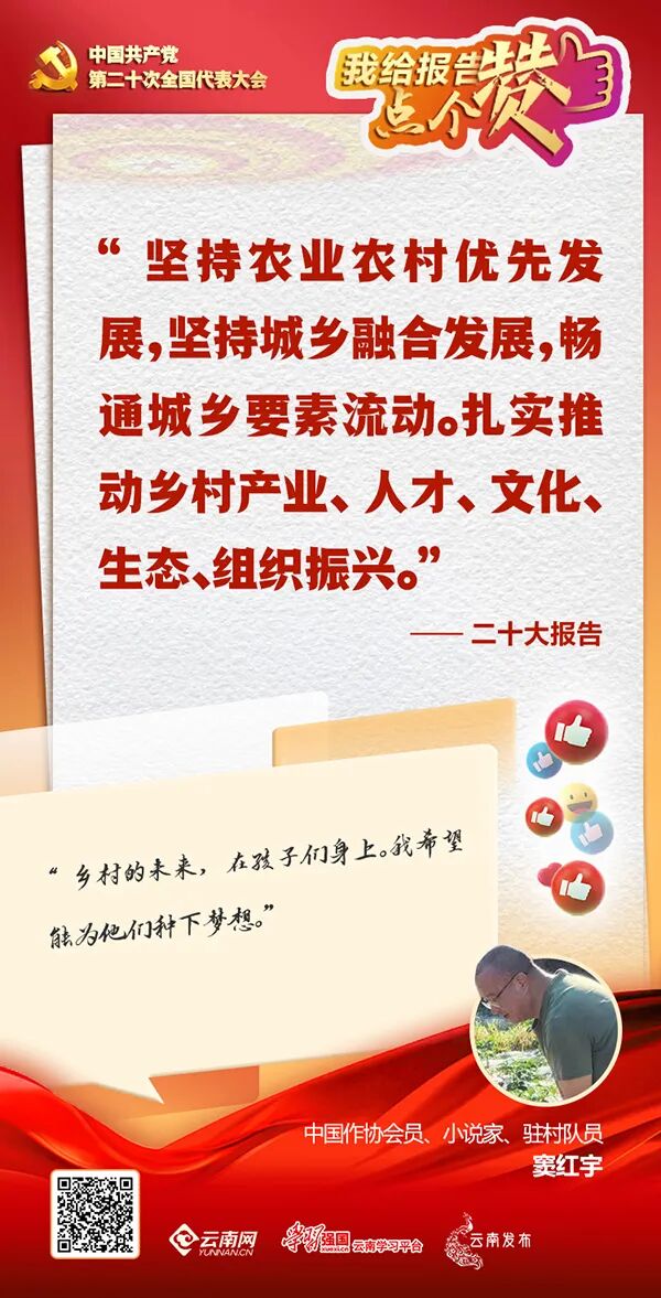 正在曲靖市会泽县马路乡荒田村驻村的作家窦红宇,听到党的二十大报告里关于乡村振兴的论述后,觉得每一句都深入人心。