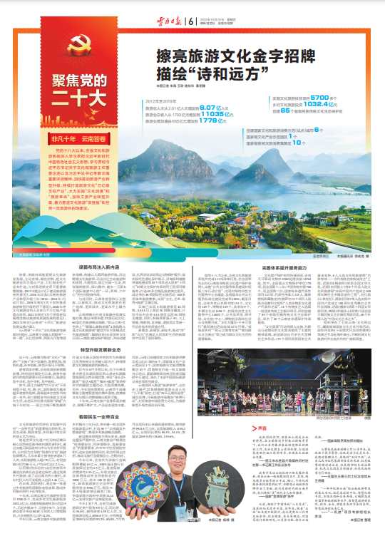 党的十八大以来,全省文化和旅游系统深入学习贯彻习近平新时代中国特色社会主义思想,学习贯彻习近平总书记关于文化和旅游工作重要论述以及习近平总书记考察云南重要讲话精神,加快推动旅游产业转型升级,持续打造旅游文化“万亿级支柱产业”,大力实施“文化润滇”和“旅游革命”,加快文旅产业转型升级,着力推进文化旅游“双强省”和世界一流旅游目的地建设。