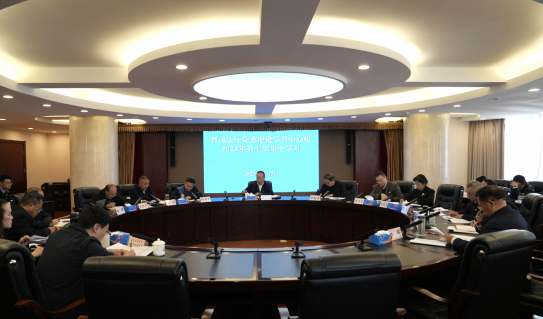 12月7日,省司法厅党委举行2023年理论学习中心组第十次集中学习,深入学习领会习近平总书记关于全面从严治党、推进自我革命及树立和践行正确政绩观的重要论述,习近平总书记关于“四下基层”的重要批示精神等,持续不断以优良学风和学习成效带动全系统理论学习走深走实,为推动新时代新征程司法行政事业高质量发展提供坚强政治保证和强大精神动力。厅党委书记、厅长茶忠旺主持会议。