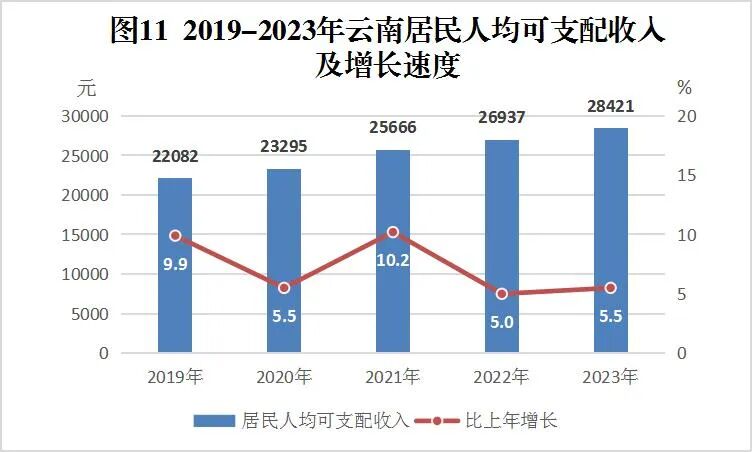 2023年,在以习近平同志为核心的党中央坚强领导下,全省上下坚持以习近平新时代中国特色社会主义思想为指导,全面贯彻落实党的二十大和二十届二中全会精神,按照党中央、国务院决策部署和省委、省政府工作要求,坚持稳中求进工作总基调,完整、准确、全面贯彻新发展理念,主动服务和融入新发展格局,锚定“3815”战略发展目标,大力发展资源经济、园区经济、口岸经济,坚定不移推进市场化、产业化、法治化、生态化、数字化进程,深入实施系列三年行动,统筹推进解难题、促发展、惠民生各项工作,着力扩大内需、优化结构、提振信心、防范化解风险,经济运行持续恢复向好,经济总量迈上新台阶,高质量发展扎实推进,中国式现代化云南实践迈出坚实步伐。