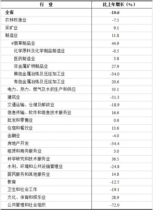 全年固定资产投资(不含农户)[12] 比上年下降10.6%。分三次产业看,第一产业投资下降9.9%,第二产业投资增长18.9%,第三产业投资下降19.9%。