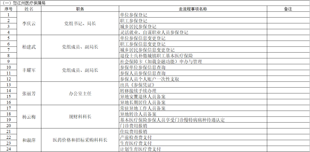 【局长处长科长走流程】丽江市、怒江州“局长处长科长走流程”事项清单